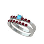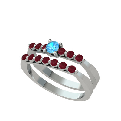 Akuamarin ve kök yakut 14 ayar beyaz altın yüzük