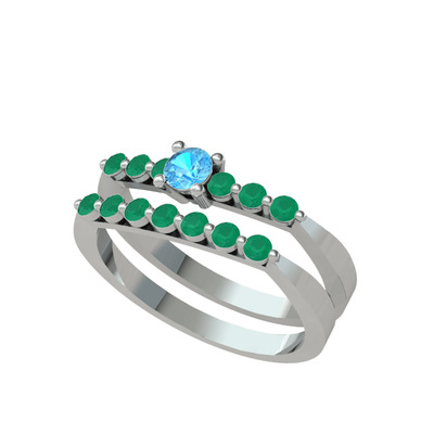 Akuamarin ve kök zümrüt 925 ayar gümüş yüzük
