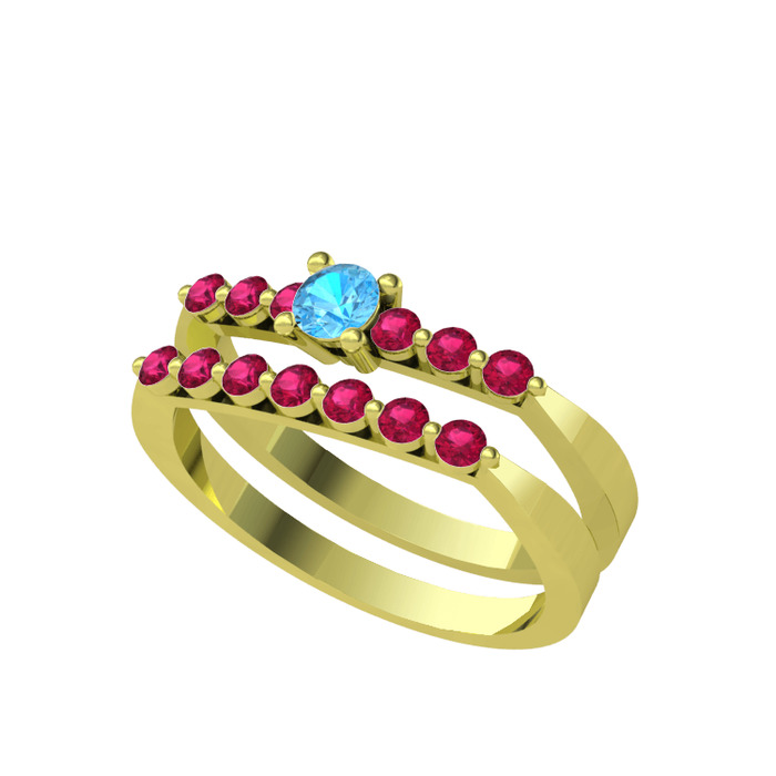 Akuamarin ve rodolit garnet 925 ayar altın kaplama gümüş yüzük
