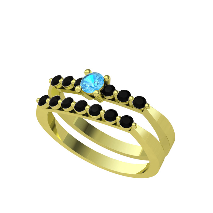 Akuamarin ve siyah zirkon 925 ayar altın kaplama gümüş yüzük