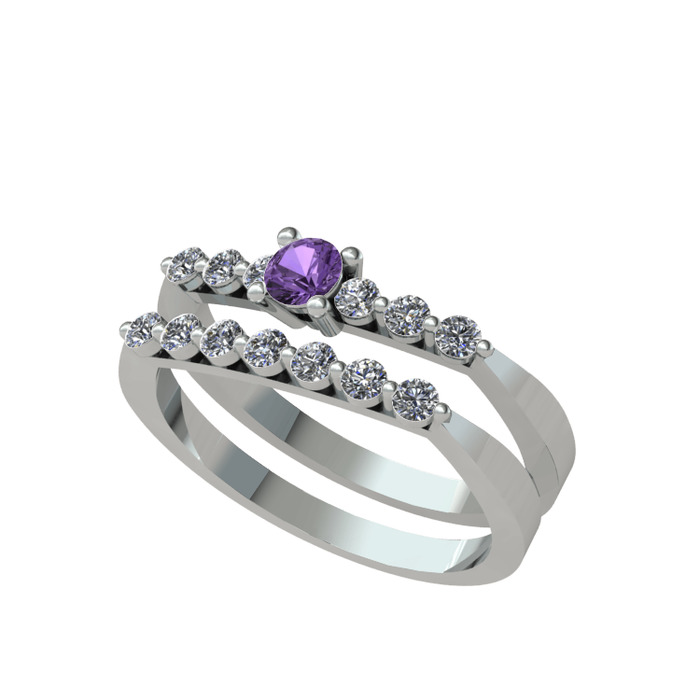 Ametist ve pırlanta 8 ayar beyaz altın yüzük (0.52 karat)