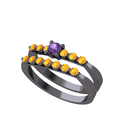 Ametist ve sitrin 925 ayar siyah rodyum kaplama gümüş yüzük
