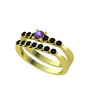 Ametist ve siyah zirkon 925 ayar altın kaplama gümüş yüzük
