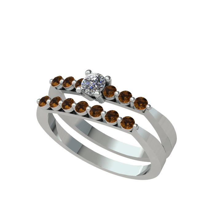 Beyaz zirkon ve dumanlı kuvars 8 ayar beyaz altın yüzük