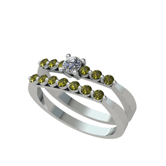 Beyaz zirkon ve peridot 925 ayar gümüş yüzük