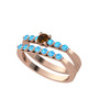 Dumanlı kuvars ve akuamarin 925 ayar rose altın kaplama gümüş yüzük