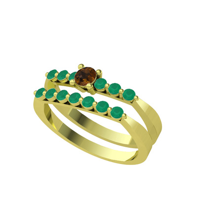 Dumanlı kuvars ve kök zümrüt 925 ayar altın kaplama gümüş yüzük