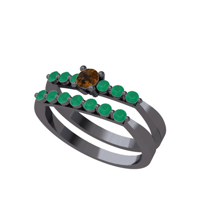 Dumanlı kuvars ve kök zümrüt 925 ayar siyah rodyum kaplama gümüş yüzük