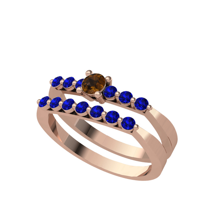 Dumanlı kuvars ve lab safir 8 ayar rose altın yüzük
