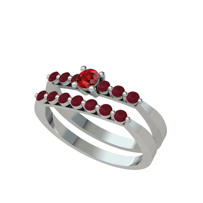 Garnet ve kök yakut 14 ayar beyaz altın yüzük
