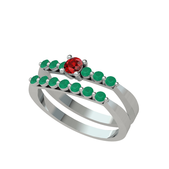 Garnet ve kök zümrüt 14 ayar beyaz altın yüzük