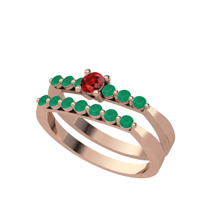 Garnet ve kök zümrüt 14 ayar rose altın yüzük
