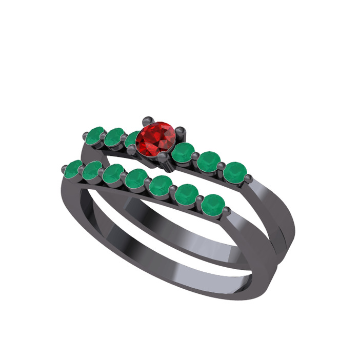 Garnet ve kök zümrüt 925 ayar siyah rodyum kaplama gümüş yüzük