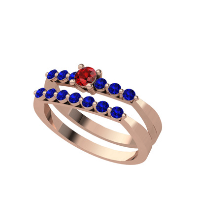 Garnet ve lab safir 14 ayar rose altın yüzük
