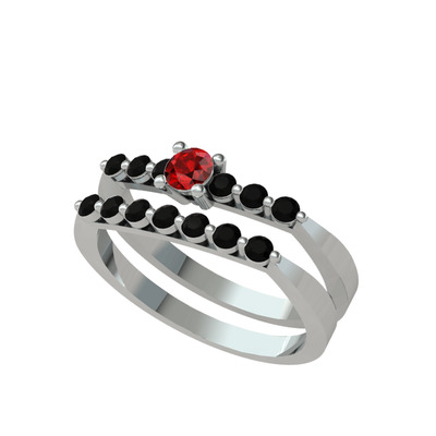 Garnet ve siyah zirkon 14 ayar beyaz altın yüzük