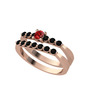 Garnet ve siyah zirkon 8 ayar rose altın yüzük