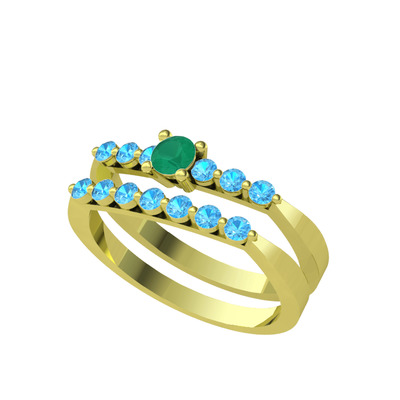 Kök zümrüt ve akuamarin 925 ayar altın kaplama gümüş yüzük