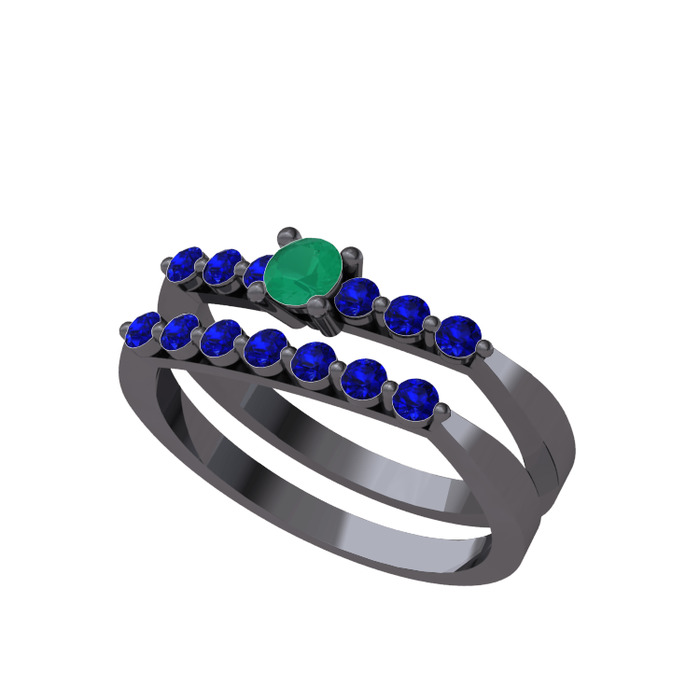 Kök zümrüt ve lab safir 925 ayar siyah rodyum kaplama gümüş yüzük