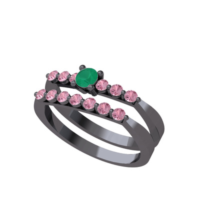 Kök zümrüt ve pembe kuvars 925 ayar siyah rodyum kaplama gümüş yüzük
