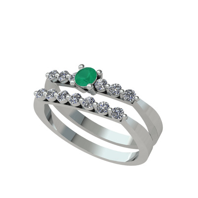 Kök zümrüt ve pırlanta 8 ayar beyaz altın yüzük (0.52 karat)