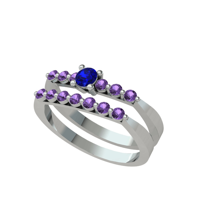 Lab safir ve ametist 8 ayar beyaz altın yüzük