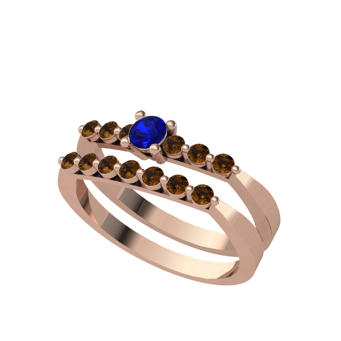 Lab safir ve dumanlı kuvars 14 ayar rose altın yüzük