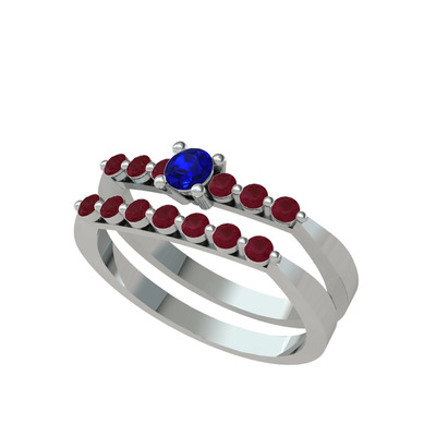 Lab safir ve kök yakut 8 ayar beyaz altın yüzük