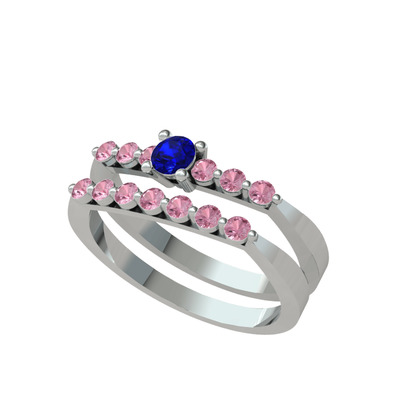 Lab safir ve pembe kuvars 18 ayar beyaz altın yüzük