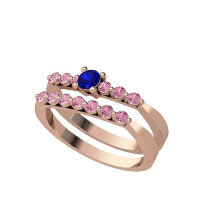 Lab safir ve pembe kuvars 18 ayar rose altın yüzük