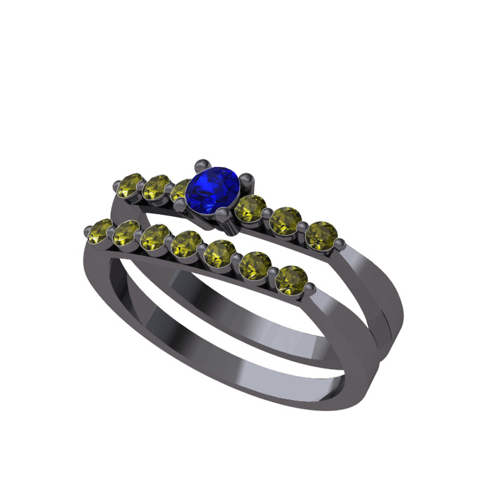 Lab safir ve peridot 925 ayar siyah rodyum kaplama gümüş yüzük