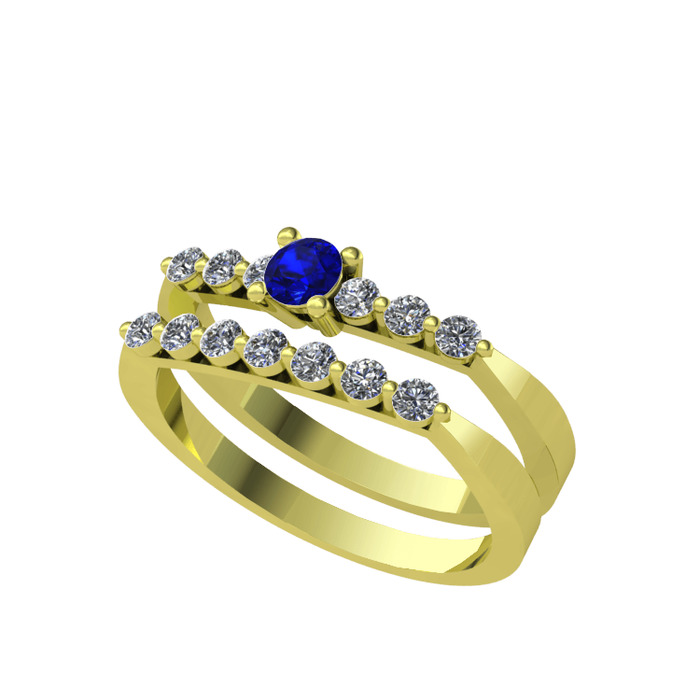 Lab safir ve pırlanta 18 ayar altın yüzük (0.52 karat)