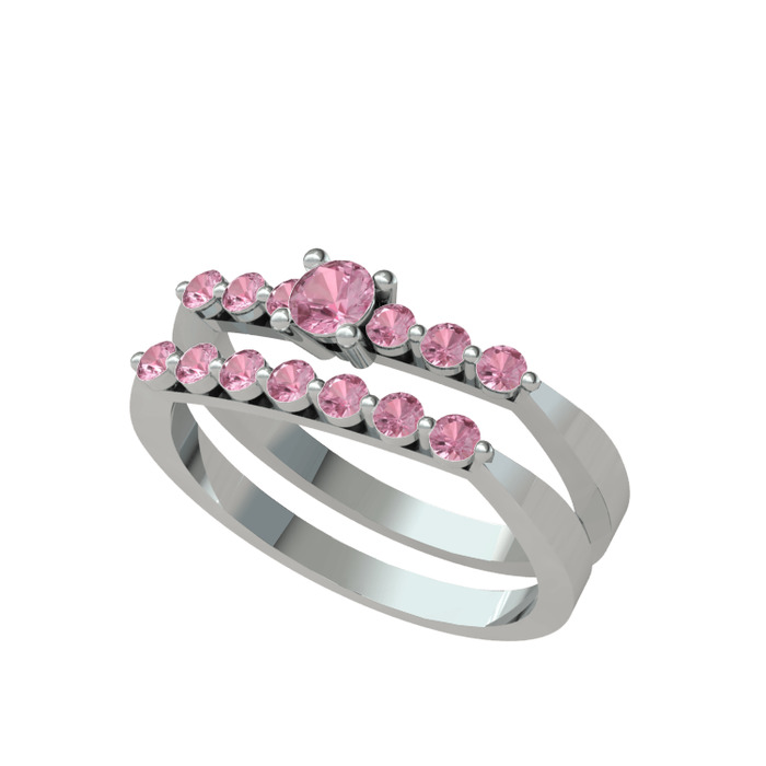 Pembe kuvars 14 ayar beyaz altın yüzük