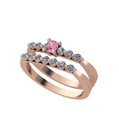 Pembe kuvars ve pırlanta 8 ayar rose altın yüzük (0.52 karat)