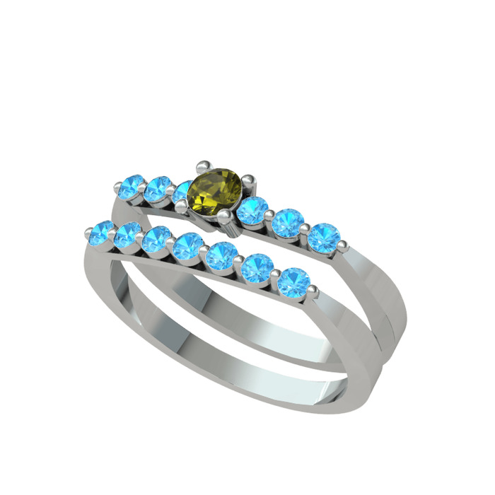 Peridot ve akuamarin 14 ayar beyaz altın yüzük