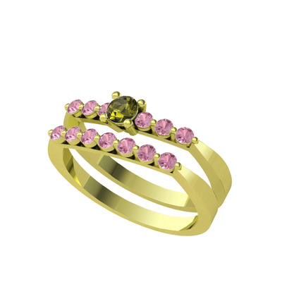 Peridot ve pembe kuvars 14 ayar altın yüzük
