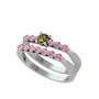 Peridot ve pembe kuvars 18 ayar beyaz altın yüzük