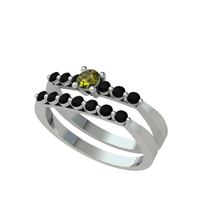 Peridot ve siyah zirkon 925 ayar gümüş yüzük