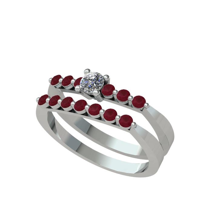 Pırlanta ve kök yakut 925 ayar gümüş yüzük (0.24 karat)