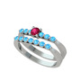 Rodolit garnet ve akuamarin 18 ayar beyaz altın yüzük