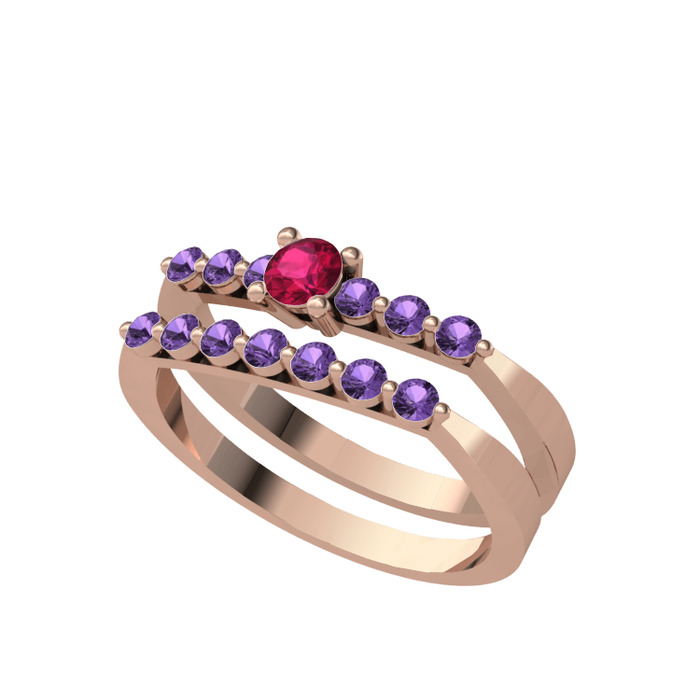 Rodolit garnet ve ametist 8 ayar rose altın yüzük