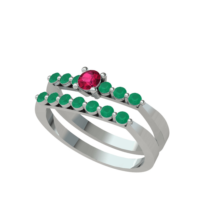 Rodolit garnet ve kök zümrüt 18 ayar beyaz altın yüzük
