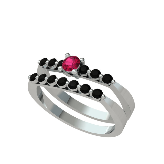 Rodolit garnet ve siyah zirkon 8 ayar beyaz altın yüzük