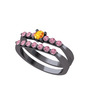 Sitrin ve pembe kuvars 925 ayar siyah rodyum kaplama gümüş yüzük