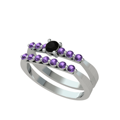 Siyah zirkon ve ametist 14 ayar beyaz altın yüzük