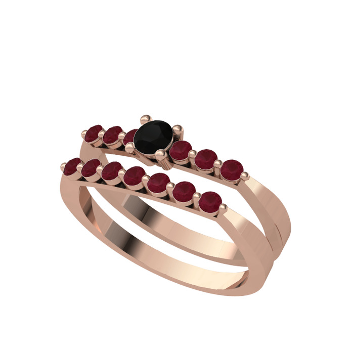 Siyah zirkon ve kök yakut 925 ayar rose altın kaplama gümüş yüzük