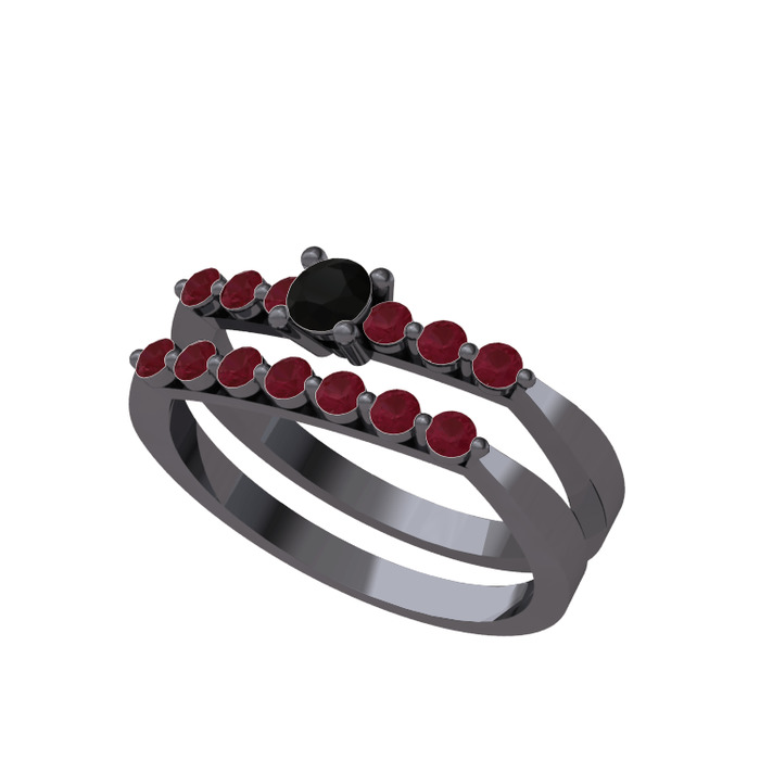 Siyah zirkon ve kök yakut 925 ayar siyah rodyum kaplama gümüş yüzük