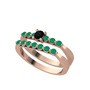 Siyah zirkon ve kök zümrüt 8 ayar rose altın yüzük