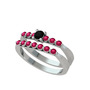 Siyah zirkon ve rodolit garnet 14 ayar beyaz altın yüzük