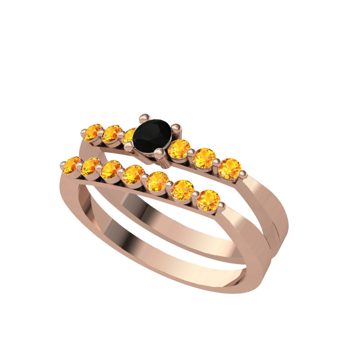 Siyah zirkon ve sitrin 8 ayar rose altın yüzük
