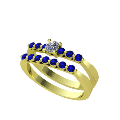 Swarovski ve lab safir 18 ayar altın yüzük